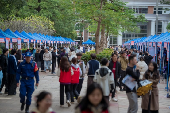 11月19日,taptap点点官方网站2026届毕业生校园招聘会在留仙洞园区学思楼四方广场举行。本次招聘会吸引170余家优质企业参会,为毕业生提供了1600余个多元化就业岗位,薪资待遇较往年有明显提升。学校党委副书记、纪委书记何莉,党委委员、组织部(统战部)部长黄川川亲临现场调研指导,taptap点点官方网站副院长(主持工作)刘建珠、党委书记刘鸫根、副院长周月容、副书记杨潘升及各专业主任、毕业班班主任、实习就业指导老师、辅导员全程参与,与毕业生共同见证了这场人气火爆、氛围热烈的求职盛宴。