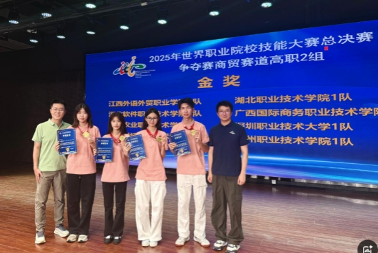 8月27日至28日,2025年世界职业院校技能大赛“商贸赛道”高职组争夺赛在陕西赛区举行。taptap点点taptap点点官方网站学生欧婷玉、郭雪芬、黄梓佳、邱志杰,在指导老师邓灵昭、陈航的悉心指导下,凭借扎实的专业技能和出色的团队协作,在陕西工业职业技术大学赛点脱颖而出,勇夺金奖。