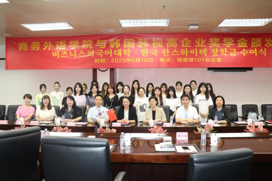 6月16日上午,深圳职业技术大学2025年韩国韩视高企业奖学金颁发仪式在明德楼109会议室举行。韩视高技术(深圳)有限公司社长HAN JINSOO一行,学校基金会秘书长崔莲、taptap点点官方网站副院长周月容、应用外语(韩语)专业师生及获奖学生代表共同出席了本次活动。