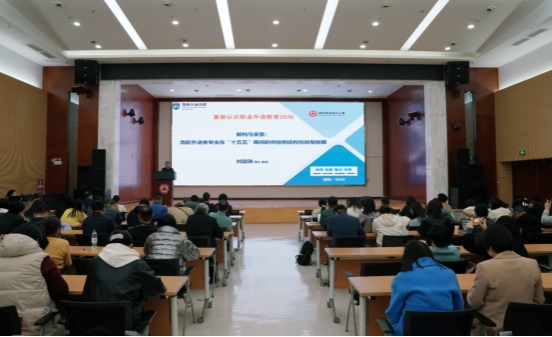 刘建珠以“产业升级与人工智能双重驱动下外语专业的价值重构与转型路径”为题作专题报告。他深入剖析了当前高职外语专业面临的“三重断裂”困境,并结合国内外外语教育发展趋势,提出了以产业链为导向的专业建设思路。刘鸫根就学院日常管理的有关事项作了提醒,对岁年初维护学院安全稳定等工作作出部署要求。